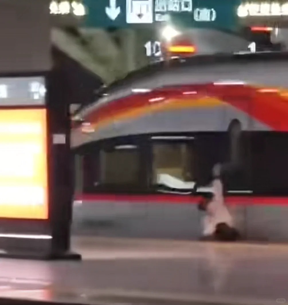 ▲廣州南站有乘客圖阻高鐵車門關(guān)閉,被列車夾著拖行受傷。影片截圖