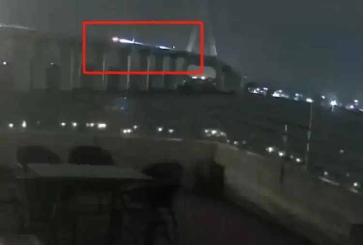 同日晚上11時(shí)39分左右,海文大橋上有一輛打“死火燈”的車停在橋面上。