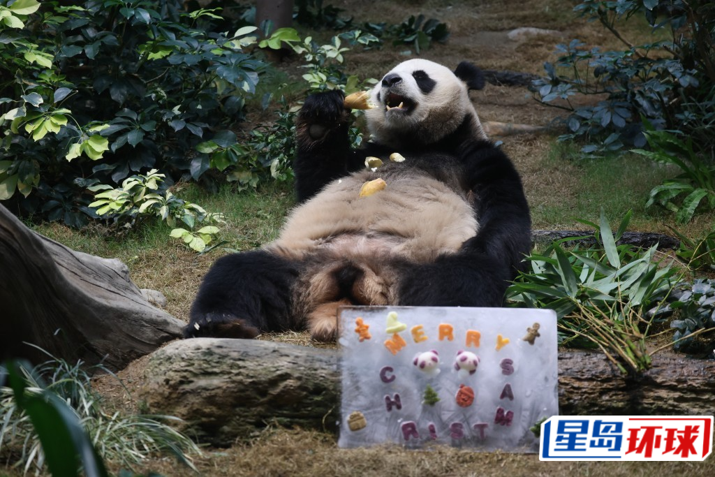 大熊貓|安安可可首在港過圣誕,安安豪邁食竹“肚腩當餐桌”