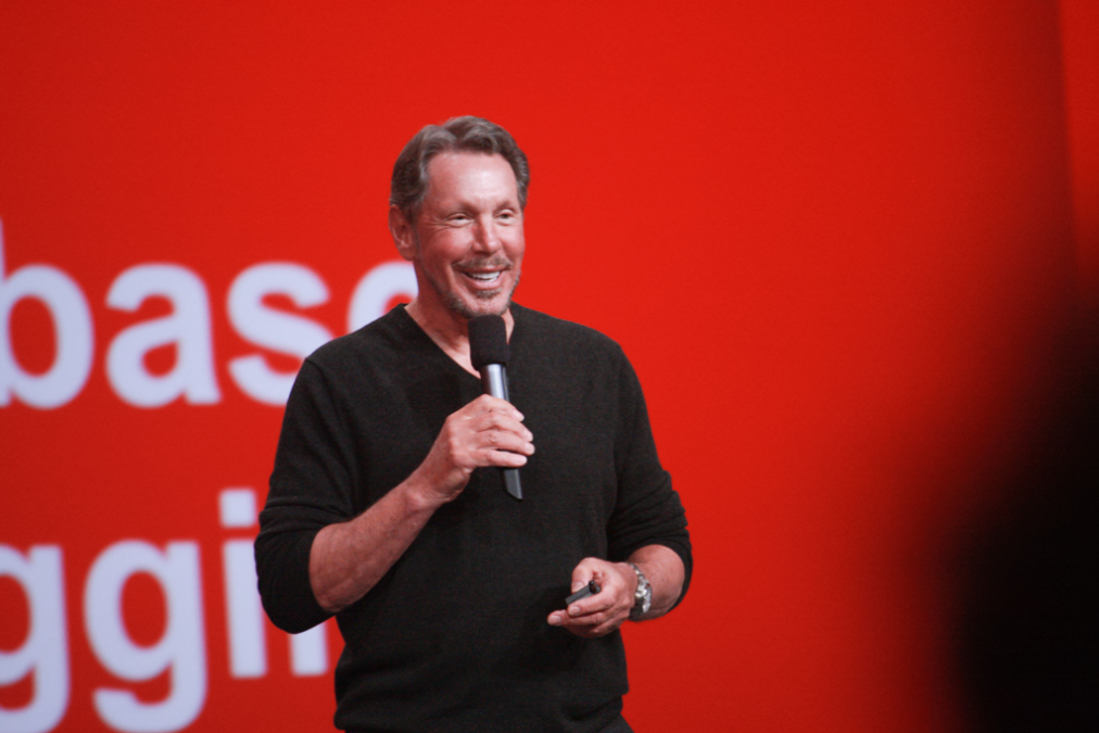 ▲甲骨文創(chuàng)辦人艾利森凍齡有方。 圖為2013年甲骨文全球大會(huì)演講照。