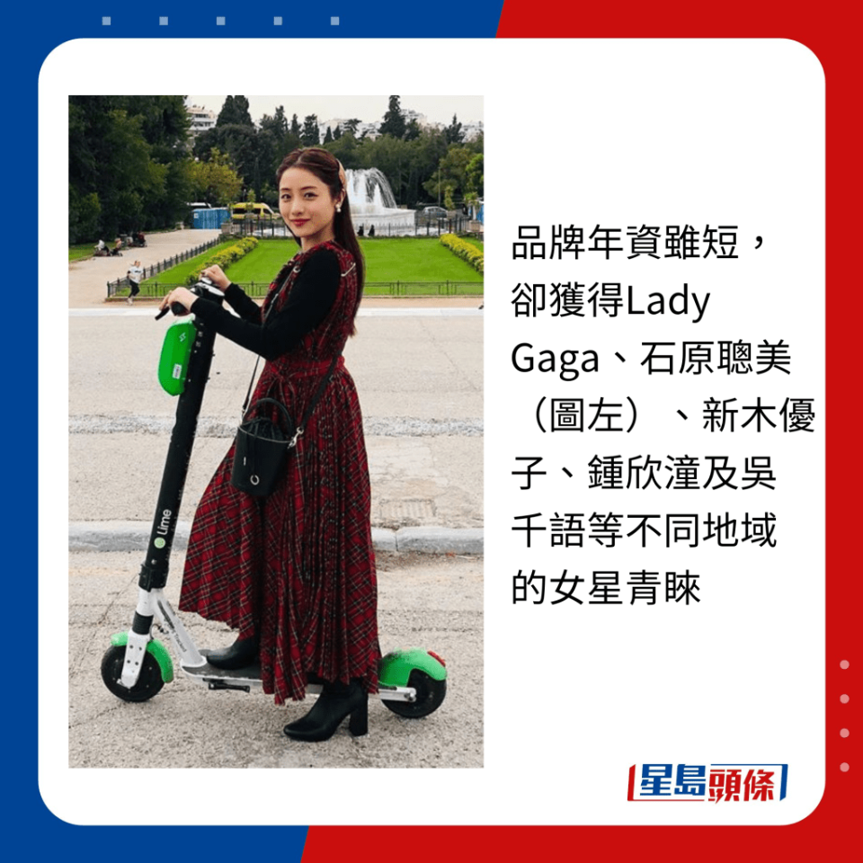 品牌年資雖短,卻獲得Lady Gaga、石原聰美(圖左)、新木優(yōu)子、鐘欣潼及吳千語等不同地域的女星青睞