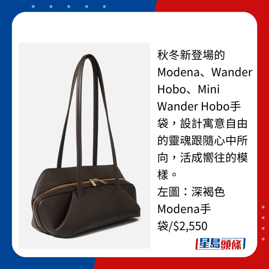 秋冬新登場的Modena、Wander Hobo、Mini Wander Hobo手袋,設(shè)計(jì)寓意自由的靈魂跟隨心中所向,活成向往的模樣。