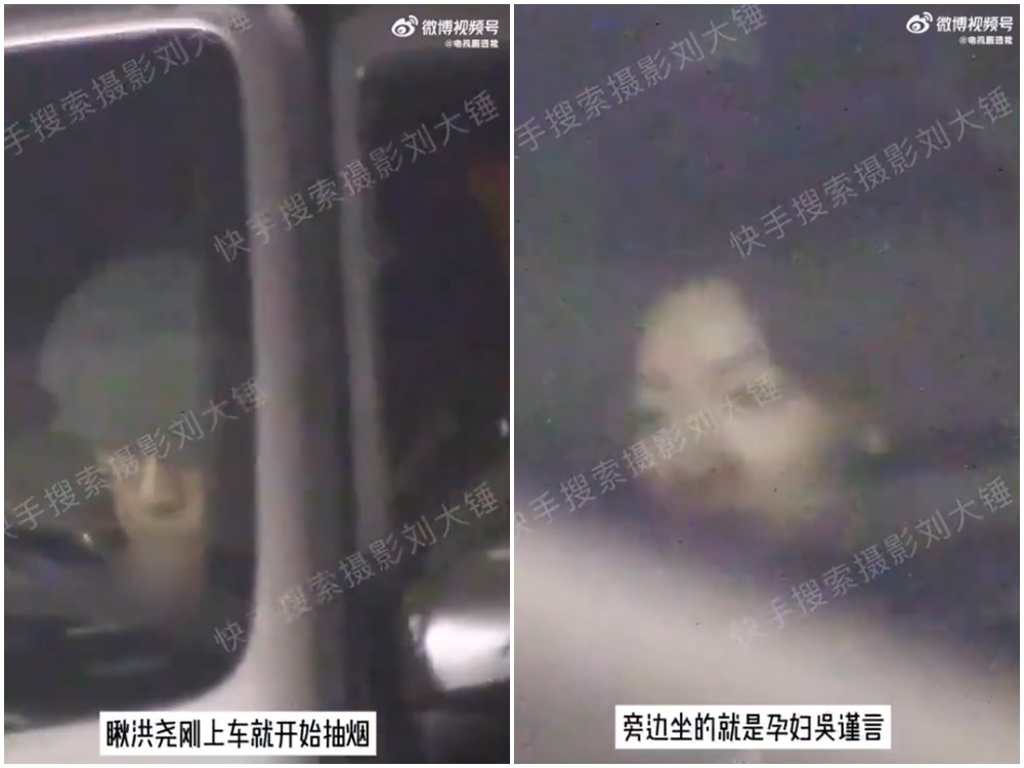 ▲狗仔拍到洪堯當(dāng)著吳謹(jǐn)言的面抽煙。 (微博@攝影劉大錘)