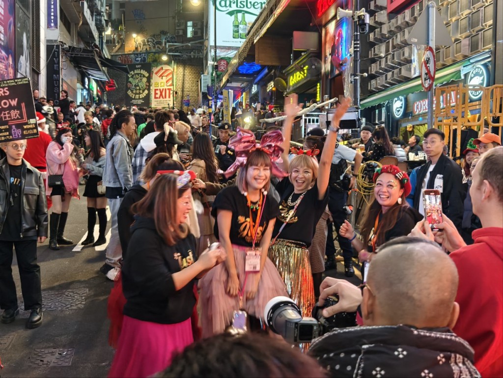 ▲蘭桂坊越夜越多人,圣誕氣氛濃厚。