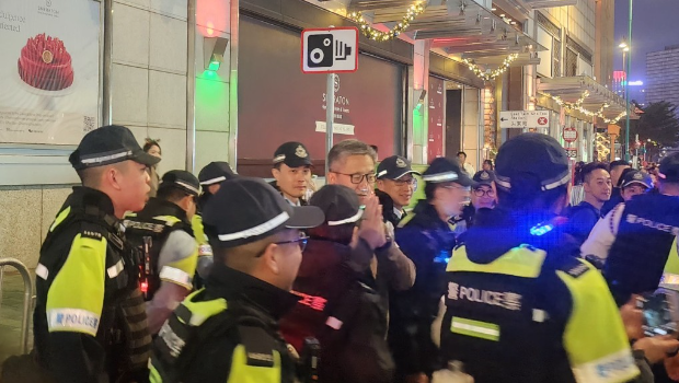 昨晚(12月24日)平安夜,因應(yīng)市民外出歡度佳節(jié),警方及民安隊(duì)等隊(duì)伍,于港九多處部署人員,協(xié)助維持秩序。晚上時(shí)分,警務(wù)處處長蕭澤頤到尖沙咀及中環(huán)蘭桂坊等不同地區(qū),視察人員部署情況。