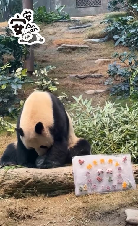 中央贈港的大熊貓“安安”及“可可”,獲特制雪人造型的冰盤;龍鳳胎BB父親“樂樂”則是蛋糕型的冰盤,母親“盈盈”則有一個(gè)圣誕樹造型的冰盤,園方指冰盤是護(hù)理員花了不少時(shí)間精心準(zhǔn)備。