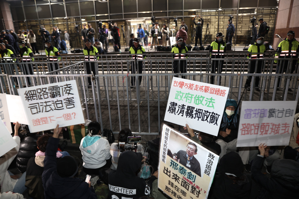 大批民眾黨支持者昨晚在臺(tái)北地檢署外聚集抗議。中時(shí)新聞網(wǎng)