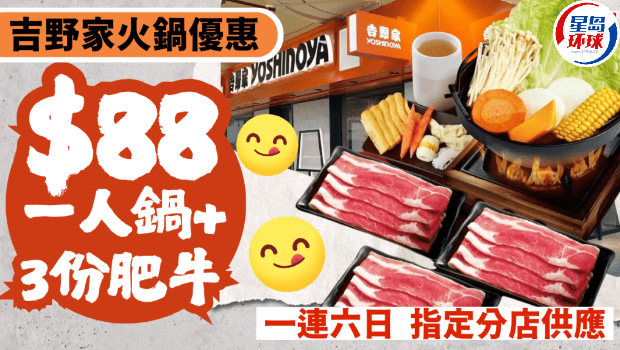 吉野家火鍋優(yōu)惠?| 一人邊爐一配3份肥牛限定價$88,一連六日/指定分店供應(yīng)