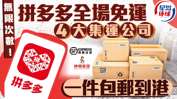 拼多多免運(yùn)費(fèi)!4大集運(yùn)公司一件包郵到港,不設(shè)門檻/無(wú)限次使用