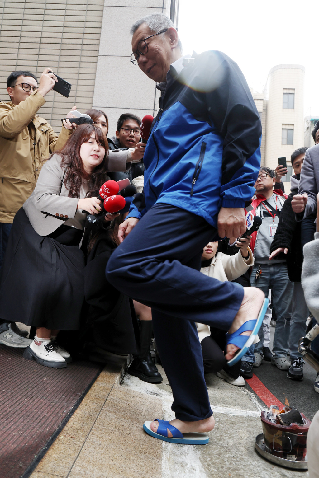 ▲臺(tái)北地檢署偵辦前臺(tái)北市長(zhǎng)柯文哲涉及京華城容積率與政治獻(xiàn)金假帳案,在押的前臺(tái)北市長(zhǎng)柯文哲移審法院后,北院27日裁定交保,完成交保后離開(kāi)返家,進(jìn)入家里前跨火爐去霉運(yùn)。(中時(shí)新聞網(wǎng))