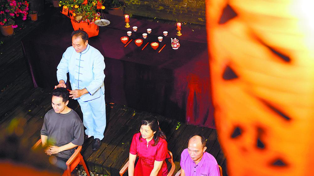 ▲新郎進(jìn)行“上頭”儀式。