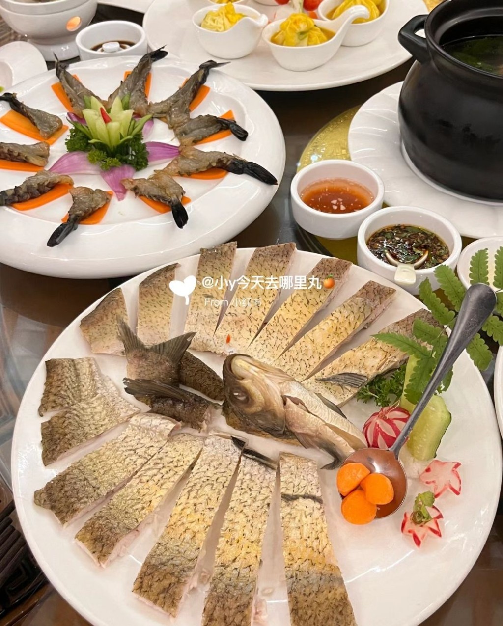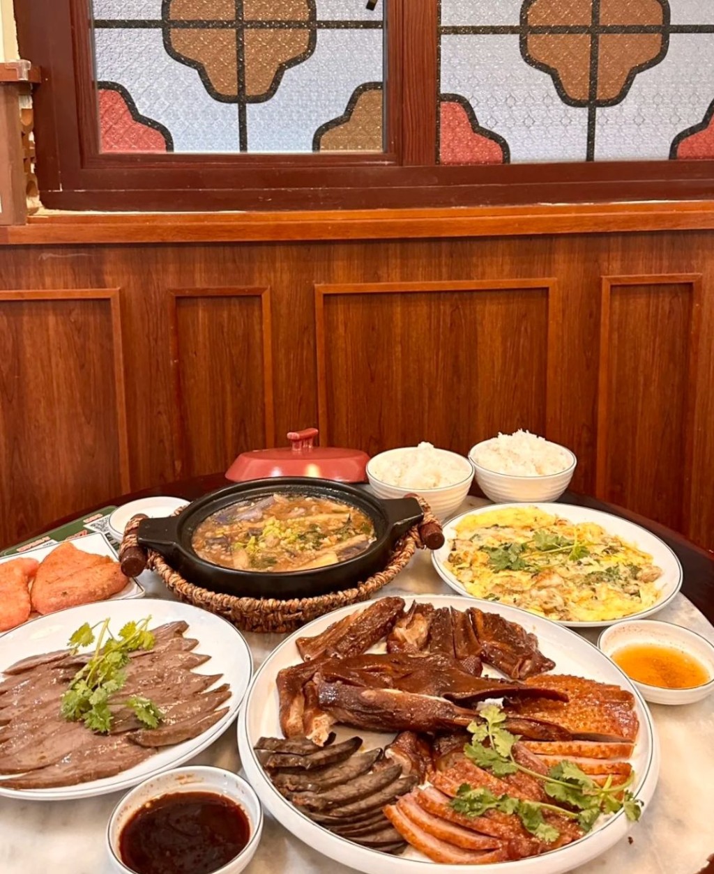 老城潮菜館保留潮汕老厝的特色擺設(shè),書法燈籠、竹椅等古色古香,是游客打卡好去處。 餐廳潮州菜有魚飯,魚飯又稱凍魚或熟魚,傳統(tǒng)潮汕漁民將部分漁獲用鹽腌后,用鹽水煮熟,冷卻后食用,保留魚的鮮味,調(diào)味帶咸,適合下飯。 其他網(wǎng)紅美食有茶香焗蝦、清蒸竹節(jié)蚌、老城白切雞、老城牛丸湯、潮式春菜煲、豆醬焗蟹、鐵板牛肉、紅燒牛雜、糕燒地瓜芋、老城砂鍋粥、金絲榴蓮酥、孜然羊排。