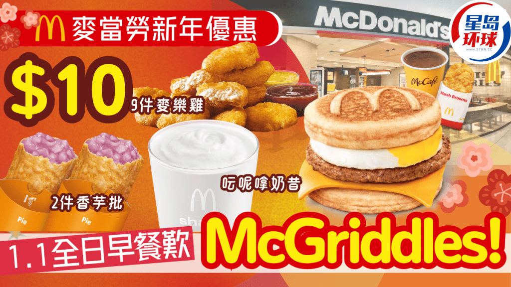 新年元旦日全日嘆McGriddles及珍寶套餐早餐