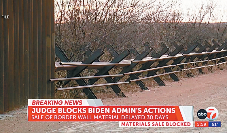 ▲德州法院下令拜登政府停止出售及處置用于興建邊境隔離墻的物料,拜登政府表示同意。候任總統(tǒng)特朗普贊揚法院的命令,是國家的勝利。 電視截圖