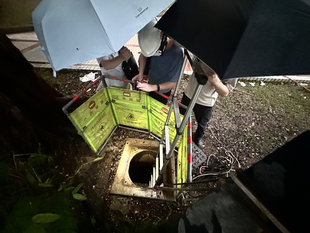 ▲4月22日深夜11時59分,4名男工人在沙田源禾游樂場進行渠務(wù)工程,其間發(fā)生事故,姓郭工人暈倒4米深沙井內(nèi),姓李工友下井拯救時也暈倒,另外兩名工友嘗試救人時吸入硫化氫不適,報警求救;救援人員趕至救出不適的兩人,惟在井底的兩人被救出送院后證實不治。
