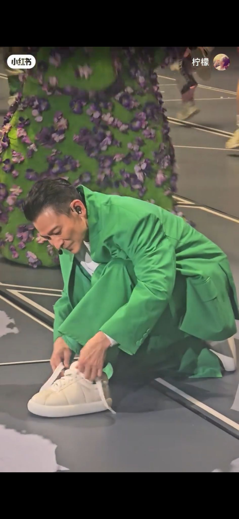 較早前,有劉德華粉絲在小紅書分享一段,劉德華在演唱會臺上的表現(xiàn)。從片段可見,華仔在穿上一套綠色玩味甚濃的表演服,腳上則穿上一對白色球鞋。出名認真專業(yè)的華仔,忽然在臺邊跪下,被粉絲全程直擊。