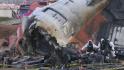 ▲客機(jī)墜毀后撞圍墻起火。韓聯(lián)社