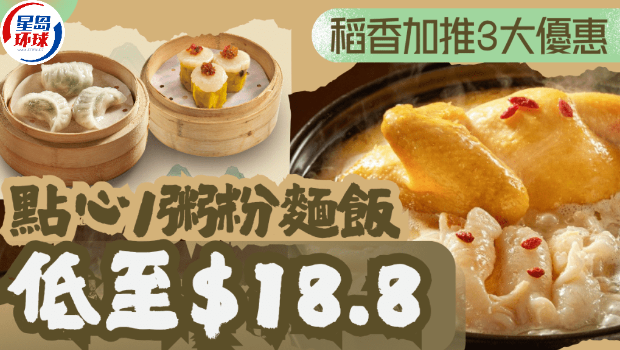稻香早午市下午茶3大折扣,點心/粥粉面飯低至18.8港元