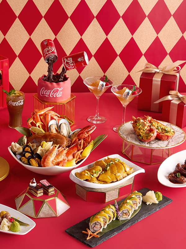 而全新“可口可樂(lè)”無(wú)限饗樂(lè)盛宴自助晚餐,重頭戲包括一系列“可口可樂(lè)”主題美饌,如以可樂(lè)升華滋味的炆和牛肋條、結(jié)合秘制醬汁與可樂(lè)滋味制成的創(chuàng)意可樂(lè)豉油雞,還有可樂(lè)造型的精致香蕉朱古力蛋糕及栗子戚風(fēng)忌廉蛋糕,以及清爽的小青檸可樂(lè)雪葩等。配上即開(kāi)生蠔、龍蝦、面包蟹、蟹腳等,也有大竹籠蒸海鮮、鐵板彩椒胡椒炒蟹,還有周末限定日本直送即開(kāi)原條鮮魚(yú)、化皮金陵乳豬件,新年期間(2025年1月27日至2月4日)更特設(shè)孜然烤羊架、發(fā)財(cái)蠔豉粥、手工意式雪糕等,每人更可獲贈(zèng)“可口可樂(lè)”隨機(jī)精品一個(gè),加送薄荷香橙可樂(lè)特飲或鴨屎香檸檬可樂(lè)特飲一杯呢!