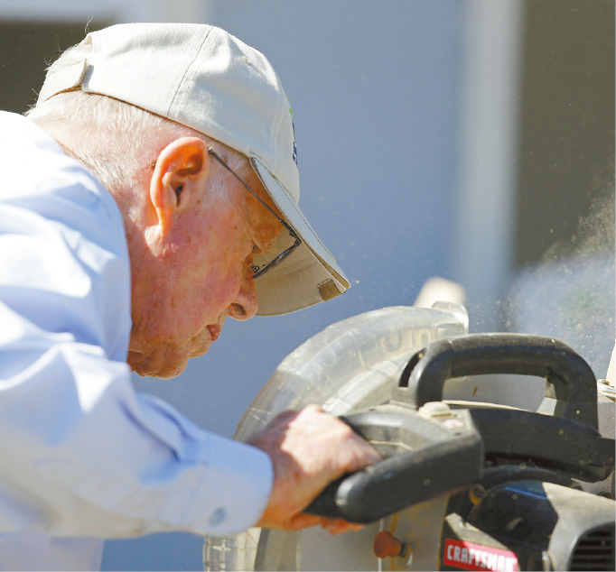 前總統(tǒng)卡特2013年10月7日親自動手在屋侖“仁愛居所”中心協(xié)助建屋。美聯(lián)社資料圖片
