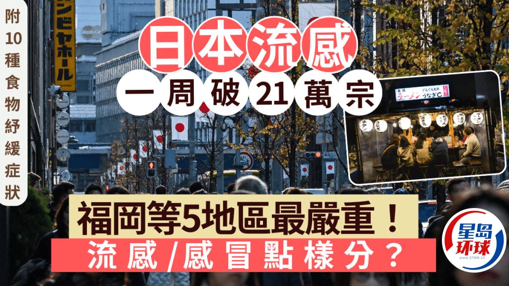 去日本旅行注意!日本最近一周流感個(gè)案已突破21萬(wàn)宗,部分港人游日返港后甚至亦出現(xiàn)流感征狀。香港有專家估計(jì),香港明年1月將踏入流感高峰期。到底應(yīng)如何分辨有致命風(fēng)險(xiǎn)的流感及一般感冒?如不幸感染流感,吃甚么食物可紓緩不適癥狀?