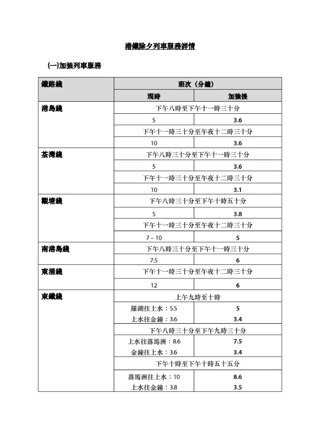 ▼港鐵及輕鐵除夕班次▼