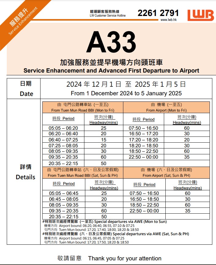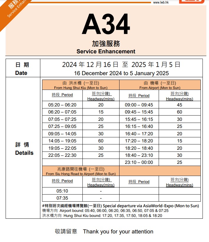 ? ?? 12月29日及1月1日:博覽館站尾班車延至翌日凌晨01:00開出