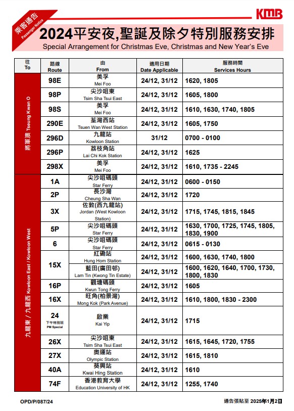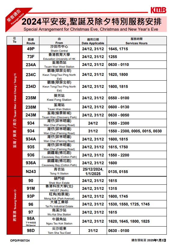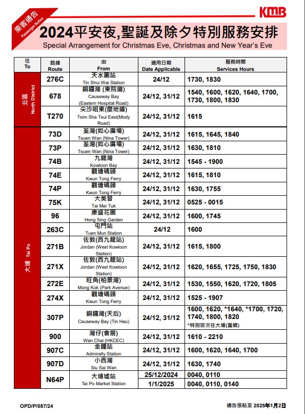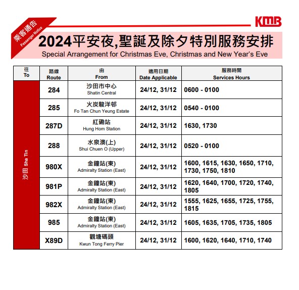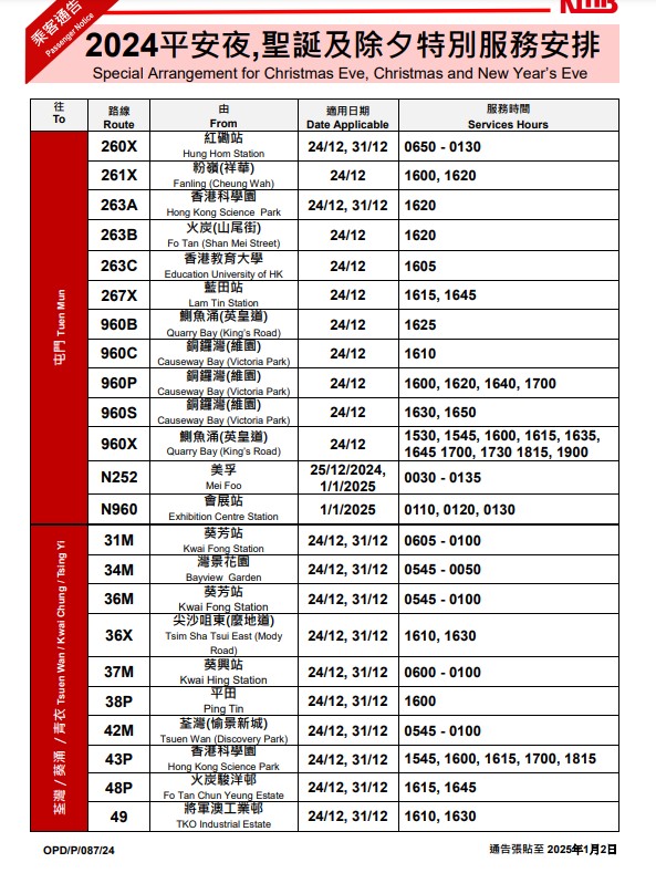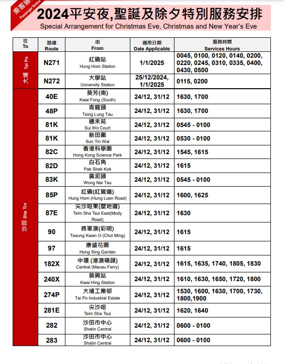 ▼九巴除夕特別服務(wù)安排▼