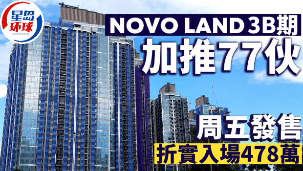 NOVO LAND 3B期加推77伙,本周五發(fā)售,折實入場478萬,平均呎價1.22萬