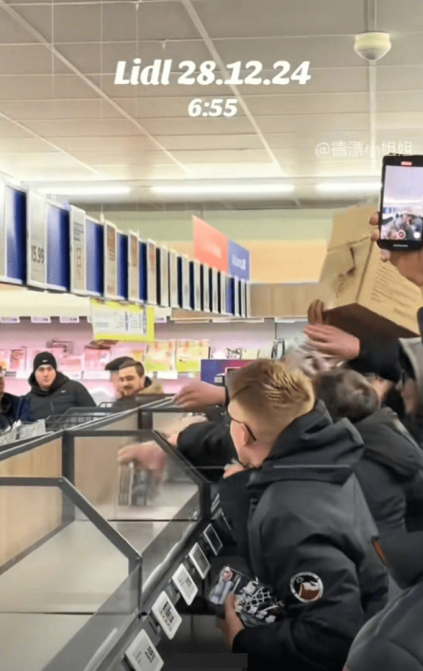 網傳視頻顯示,當天凌晨4時,德國許多超市都尚未開門,門外便已經排起長龍。原來,12月28日是德國的煙花開售首日,人們只為求得跨年煙花。網傳影片可見,超市開門后,民眾涌入去,不一會兒,購物車上都裝滿各式各樣的煙花商品。有人甚至將買來的煙花塞滿自己的車尾箱。