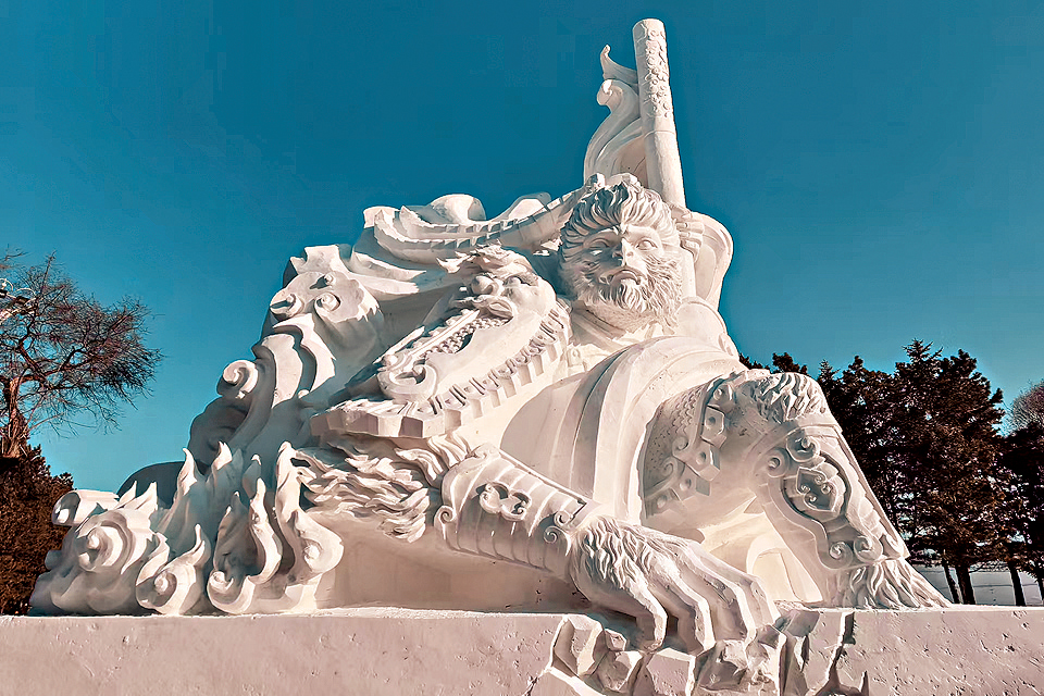 ▲來到太陽島雪雕藝術博覽會,可看到大型雪雕“白悟空”等一系列精彩作品。