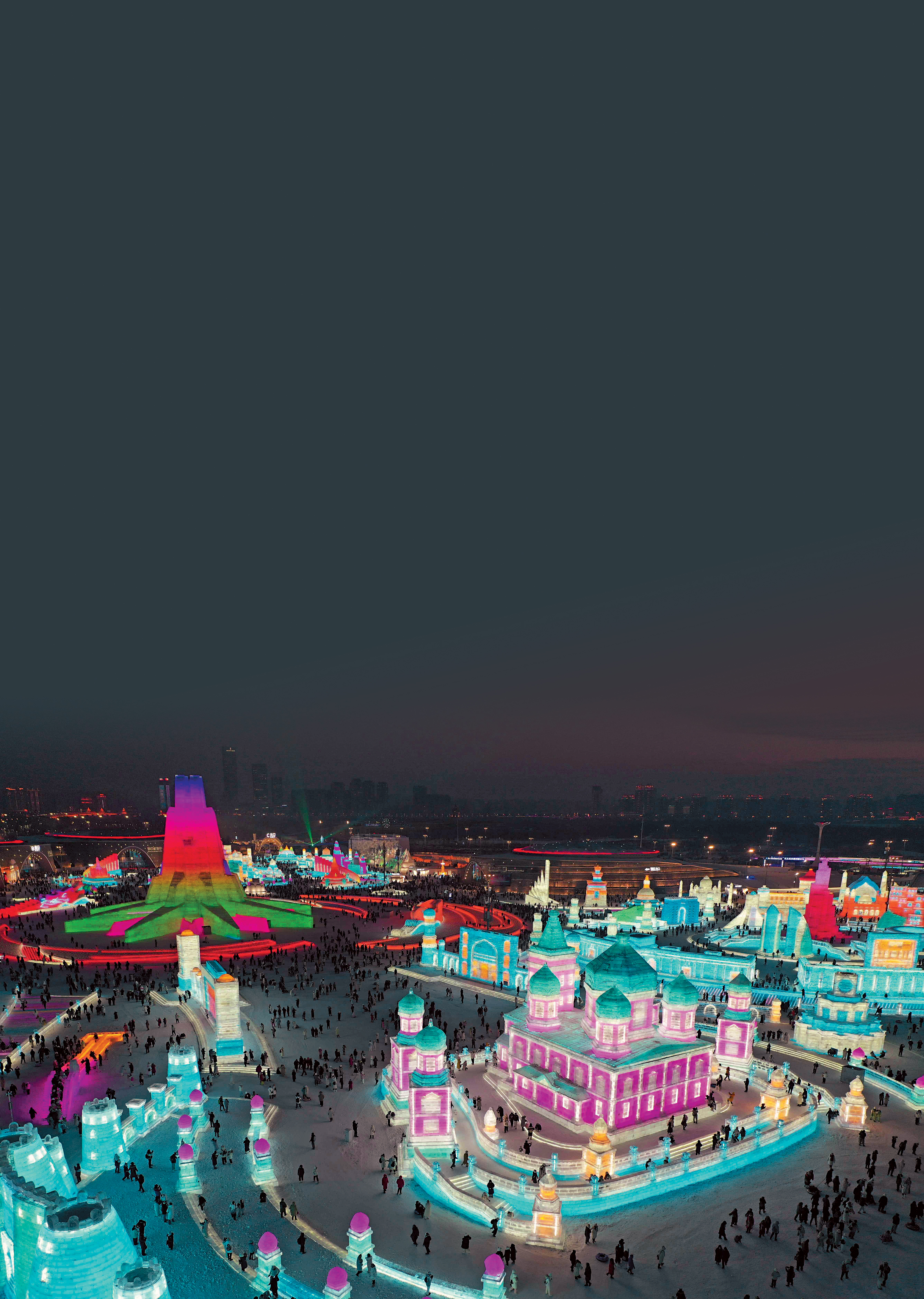 ▲第26屆哈爾濱冰雪大世界,占地100萬平方米,是舉世知名的冰雪游樂園地。