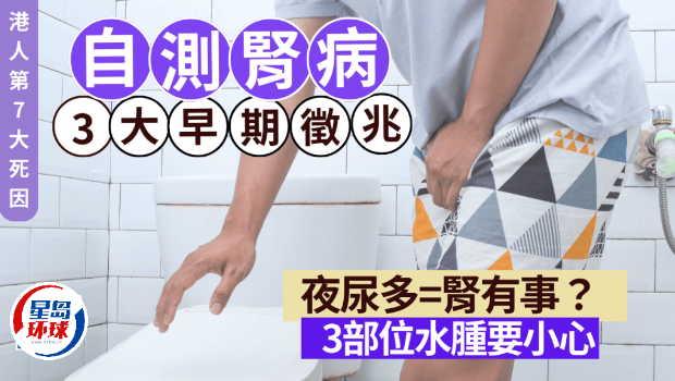 【腎病癥狀】腎病是香港第7大致命疾病。夜尿多,可能是腎臟出問(wèn)題?有醫(yī)生教分辨腎病早期3大征兆,并指出若身體3個(gè)部位水腫,也有機(jī)會(huì)是腎病警號(hào)!到底有何方法判斷?