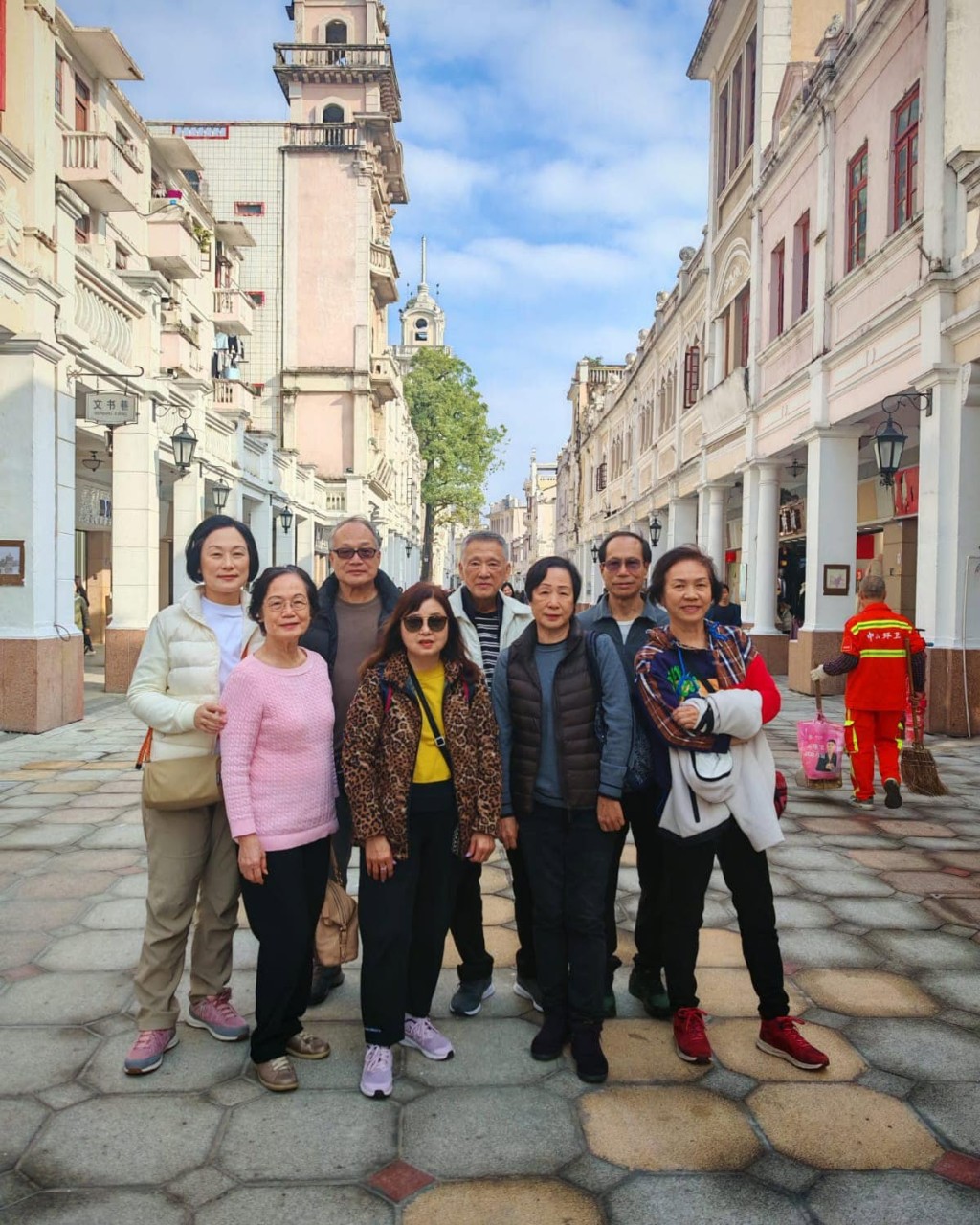 ▲張雪玲(左一)趁新一年陪長老團(tuán)到內(nèi)地游玩,昨日分享到社交網(wǎng)。