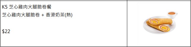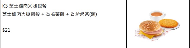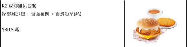 另外,過了11時(shí)后,在午餐及下午茶時(shí)段,都繼續(xù)以“肯!抵 DEAL”超值價(jià)格供應(yīng)以下優(yōu)惠餐點(diǎn):