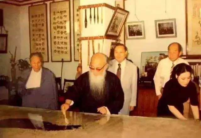 徐雯波(左)陪伴張大千作畫。