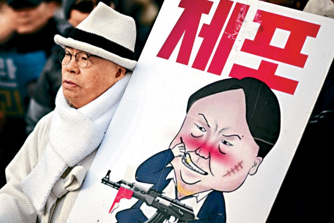 首爾示威者周五拿著諷刺尹錫悅的漫畫像游行。