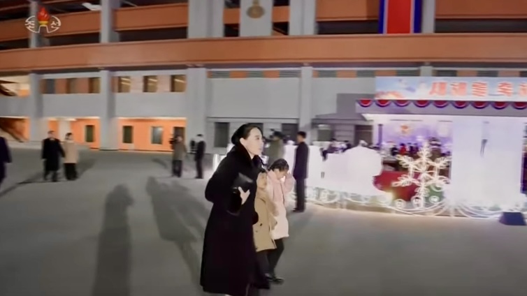 ▲朝鮮影片拍下金與正攜2童現(xiàn)身賀新年的畫面,引起廣泛討論。KCNA