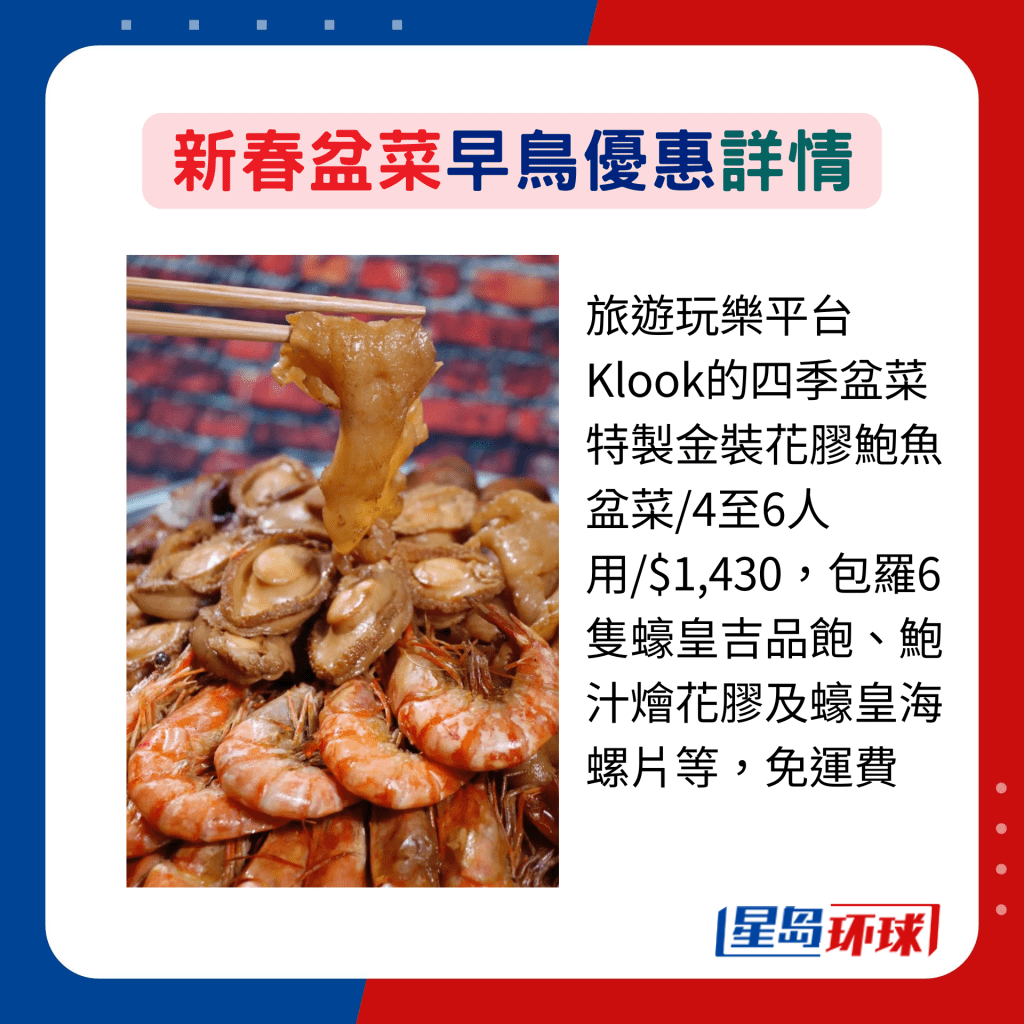 旅游玩樂平臺(tái)Klook的四季盆菜特制金裝花膠鮑魚盆菜
