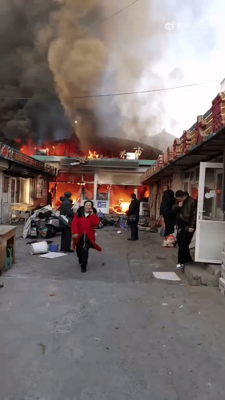 根據(jù)現(xiàn)場(chǎng)曝光的畫面顯示,整個(gè)菜市場(chǎng)濃煙滾滾,方圓幾公里的居民都能看到,發(fā)生火災(zāi)的菜市場(chǎng)正好位于居民區(qū),周圍有大量建筑物,時(shí)不時(shí)還疑似傳出幾聲像燃放爆竹的響聲,有從火災(zāi)現(xiàn)場(chǎng)逃出來(lái)的人的羽絨服都被燒壞了,目前明火已經(jīng)被全部撲滅。