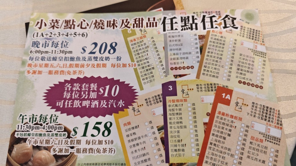 完整點(diǎn)心紙、餐牌及價(jià)目表可查看上方圖輯。