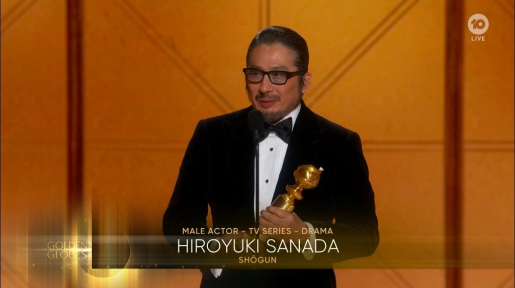 真田廣之憑《幕府將軍》贏得劇情組視帝,成為首位亞裔金球視帝。