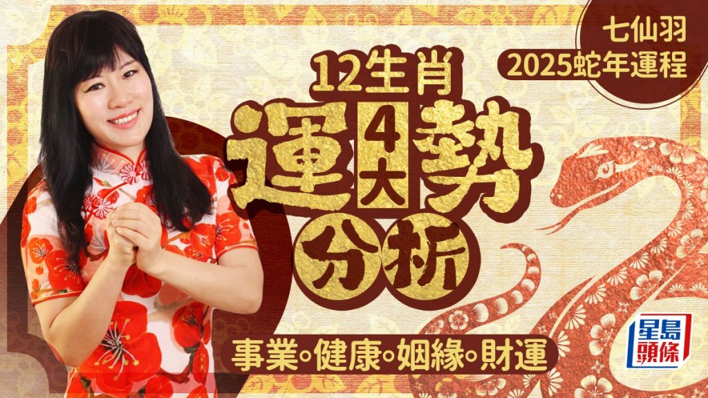 2025年蛇年運程,七仙羽師傅就12生肖,各分為事業(yè)運、財運、健康運、愛情姻緣運作出詳盡分析,哪些生肖行好運,強運在什么地方?哪些生肖于蛇年要份外留神,都會一一盡錄,即睇七仙羽12生肖開運貼士。