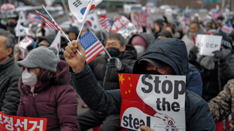 ▲有尹錫烈支持者在總統(tǒng)府官邸附近集會(huì)。(路透社)
