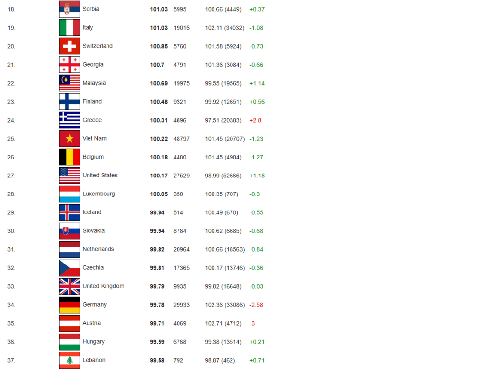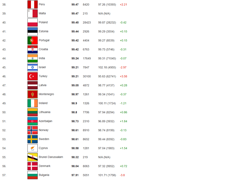 智商檢測(cè)機(jī)構(gòu)International IQ Registry(國(guó)際智商登記處)公布最新數(shù)據(jù),列出全球127個(gè)國(guó)家的智商排名。中國(guó)以平均智商107.43位居榜首,韓國(guó)、日本及新加坡分別奪得第3至第5名。俄羅斯則以平均智商103.31排名第6;美國(guó)則以100.17排名第27。