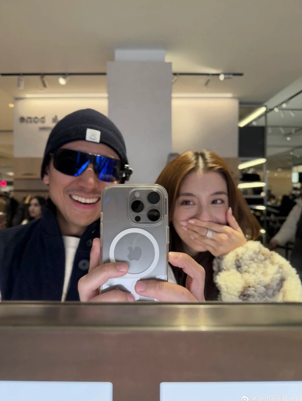 最近,有網(wǎng)民在小紅書上分享了一張吳千語與施伯雄夫妻檔在商場購物的自拍照,并留言:“話說,施伯熊的手指是真的短…”照片中可以看到吳千語身穿一件米白混色羊羔毛外套,單手捂著嘴巴甜笑,手上的銀戒指顯得格外搶眼。而身旁的施伯雄則頭戴黑色冷帽及黑色墨鏡,身穿白色上衣及黑色外套,整體造型充滿酷炫感,他雙手捧著手機同老婆玩對鏡自拍并露出燦爛笑容,二人的深厚感情顯而易見。