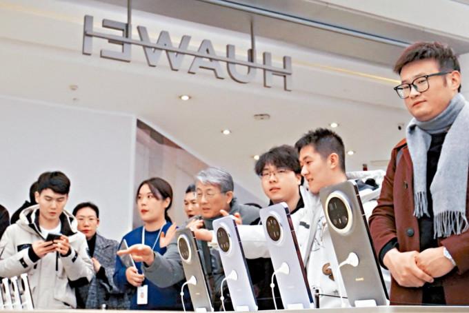 ▲北京華為手機(jī)店內(nèi),不少消費(fèi)者正在選購。