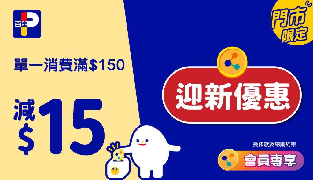 百佳大派$300電子優(yōu)惠券|新會(huì)員即賺$15/生日優(yōu)惠券最多減$10, 網(wǎng)店/門市都用得