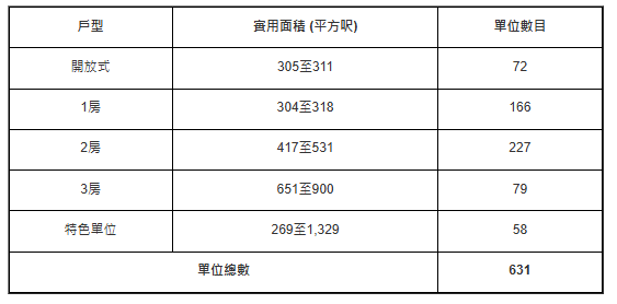 黃金海灣?珀岸標(biāo)準(zhǔn)單位共提供達(dá)10種戶型,涵蓋星級(jí)開放式至3房戶型,面積介乎305至900方呎。1房戶型佔(zhàn)166伙,佔(zhàn)整體約26%;2房單位則涵蓋4款不同間隔,合共提供256伙,佔(zhàn)整體逾4成。