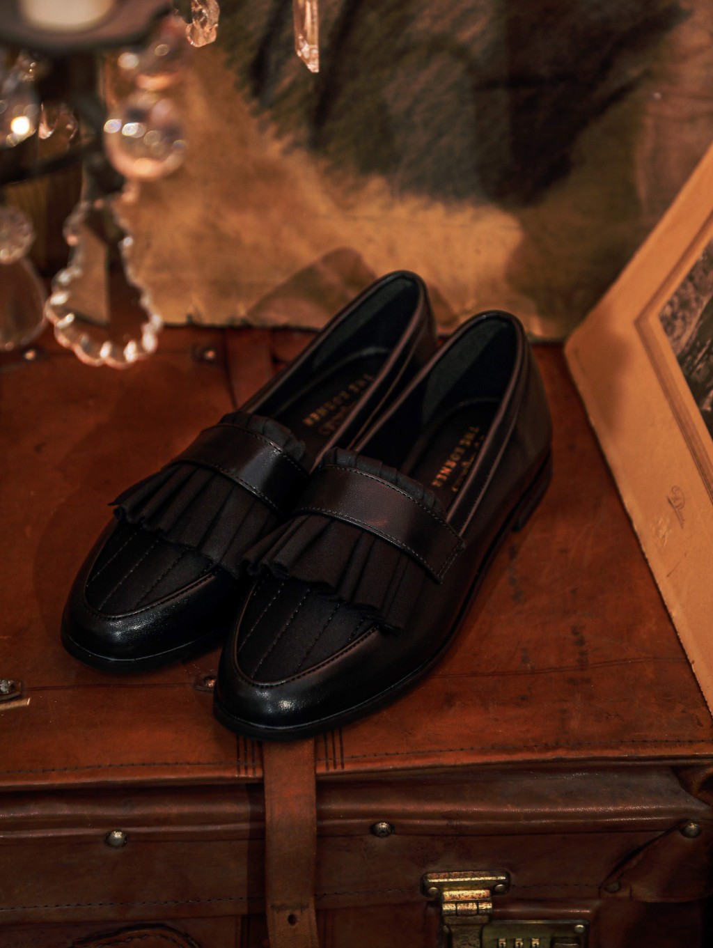 ▲The Korner伙拍由香港女歌手謝安琪(Kay)主理品牌Kaytiquette,合推“Kaytiquette跟我走”聯(lián)乘系列黑色Mariah Loafers $690,飾以絨面風(fēng)琴荷葉邊細(xì)節(jié)。